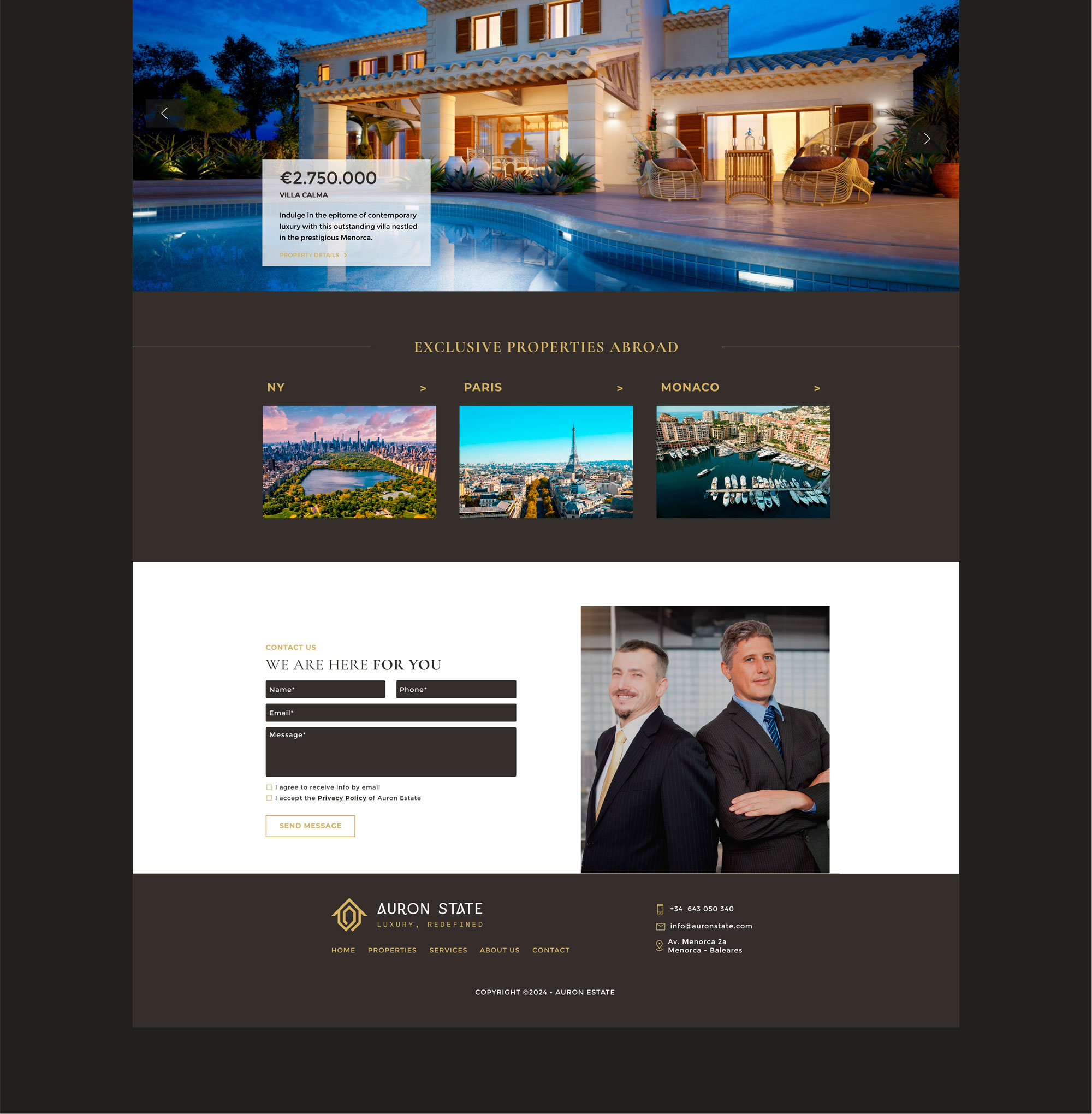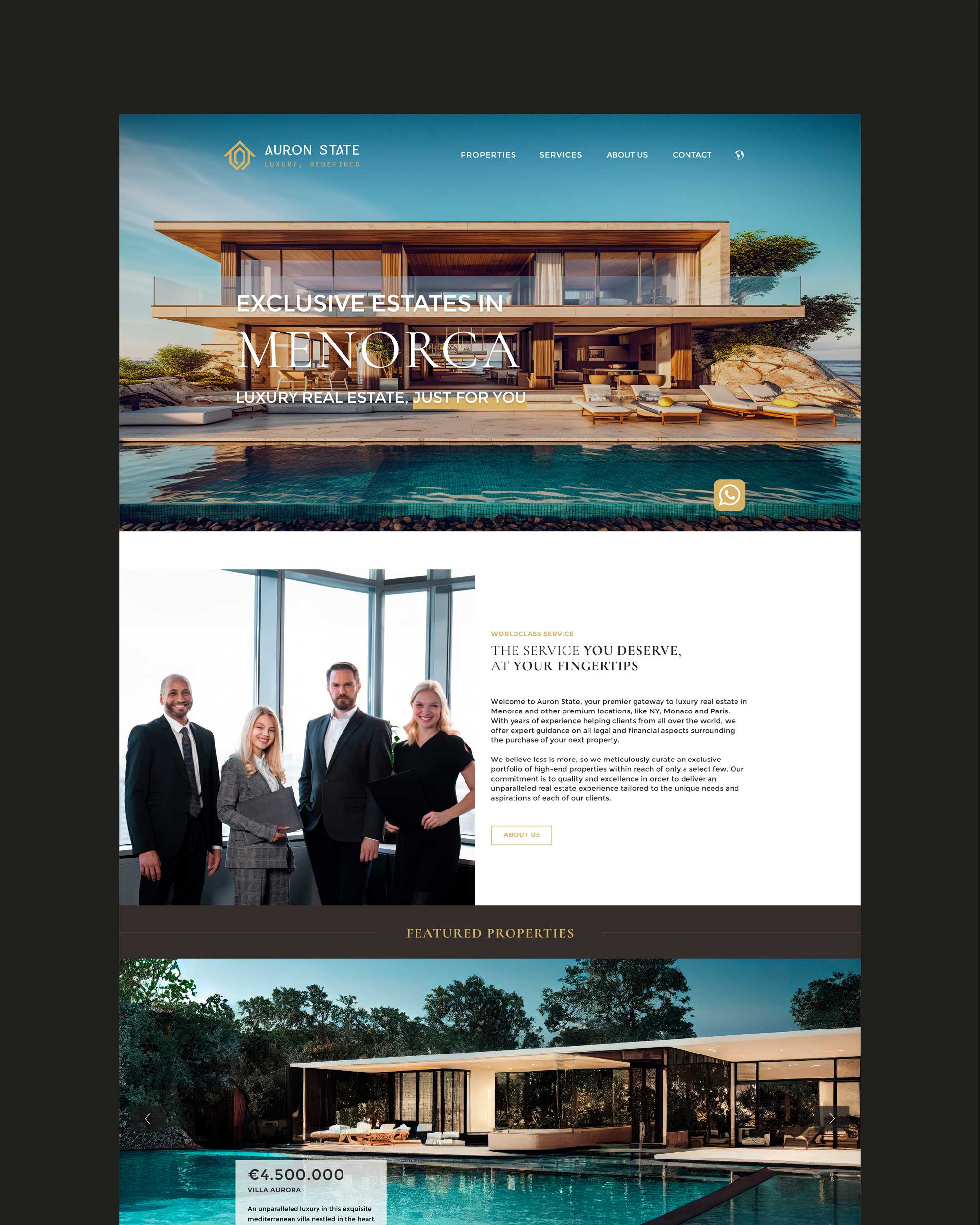 Auron Estate es una inmobiliaria de lujo especializada en propiedades exclusivas a lo largo del mediterráneo. Ofrecen una cartera exclusiva de propiedades de alto nivel en Menorca y sus alrededores, dirigida a clientes exigentes de todo el mundo.