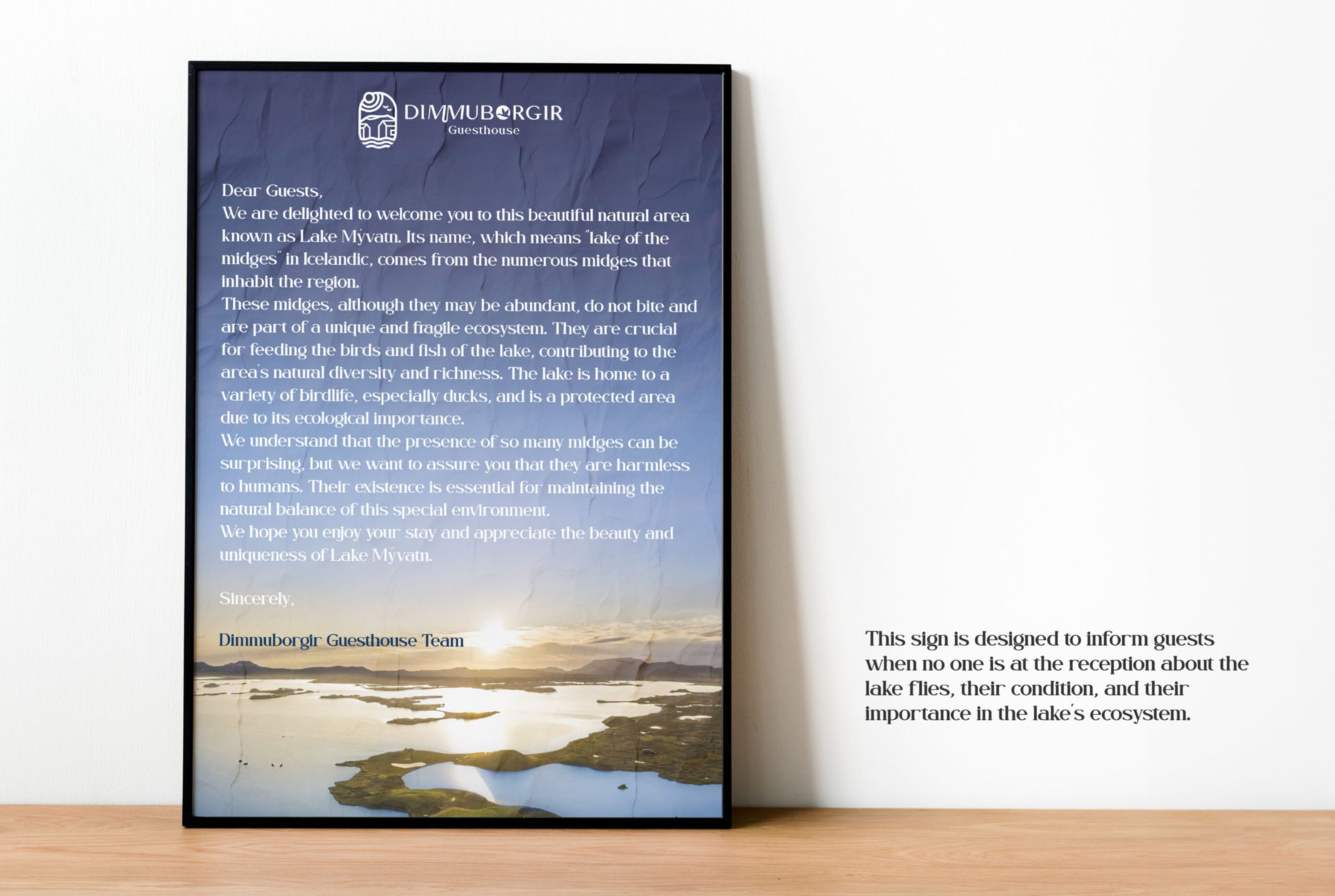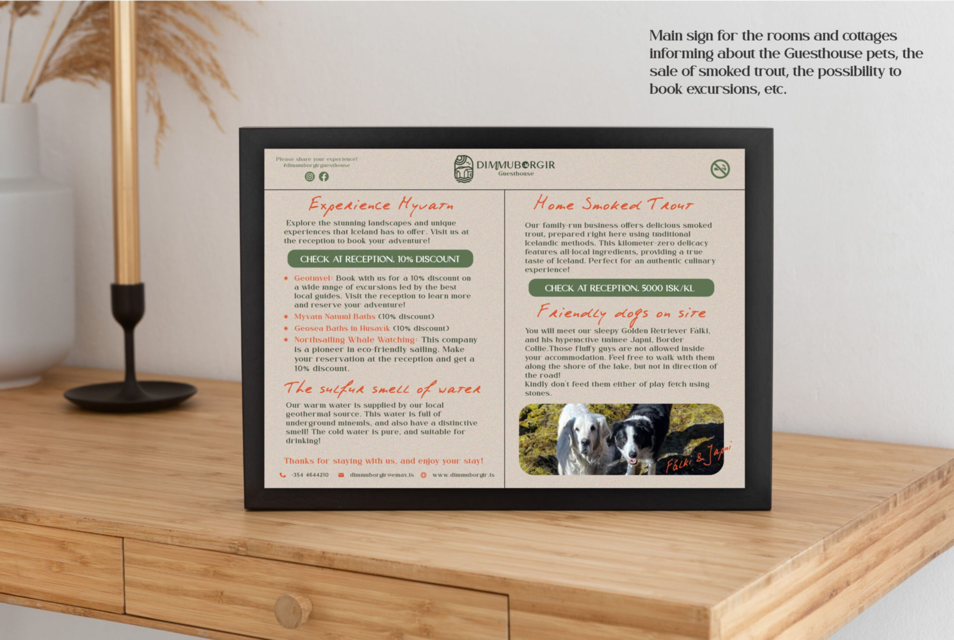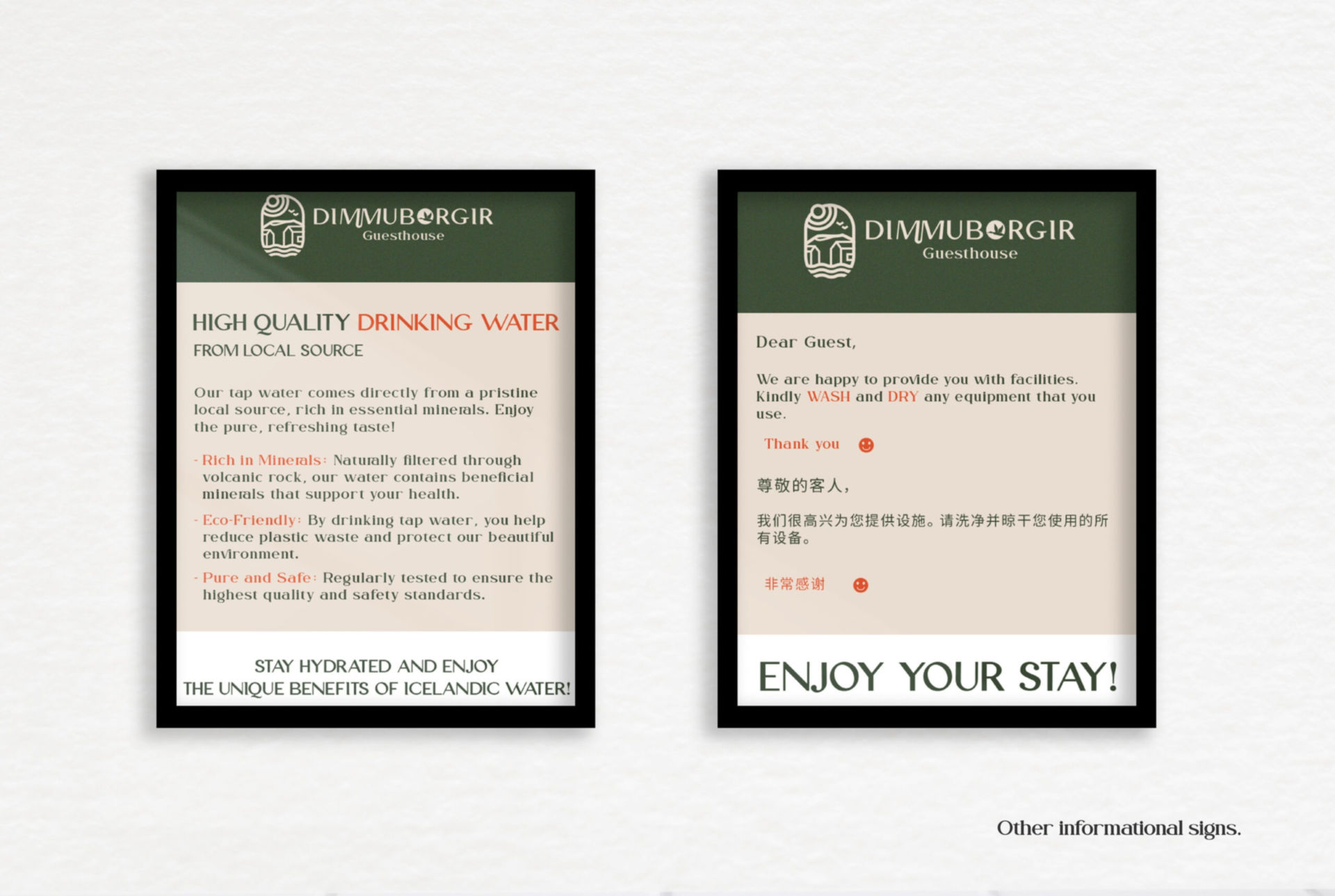 Como diseñadora gráfica, tuve la oportunidad de crear la identidad visual y el logotipo de Dimmuborgir. La identidad visual fue diseñada para reflejar la belleza pura de los paisajes que lo rodean, al tiempo que encarna el espíritu ecológico y sereno del resort. Cada elemento del diseño se inspiró en las majestuosas maravillas naturales de Islandia, mejorando la experiencia del huésped en este refugio de paz.