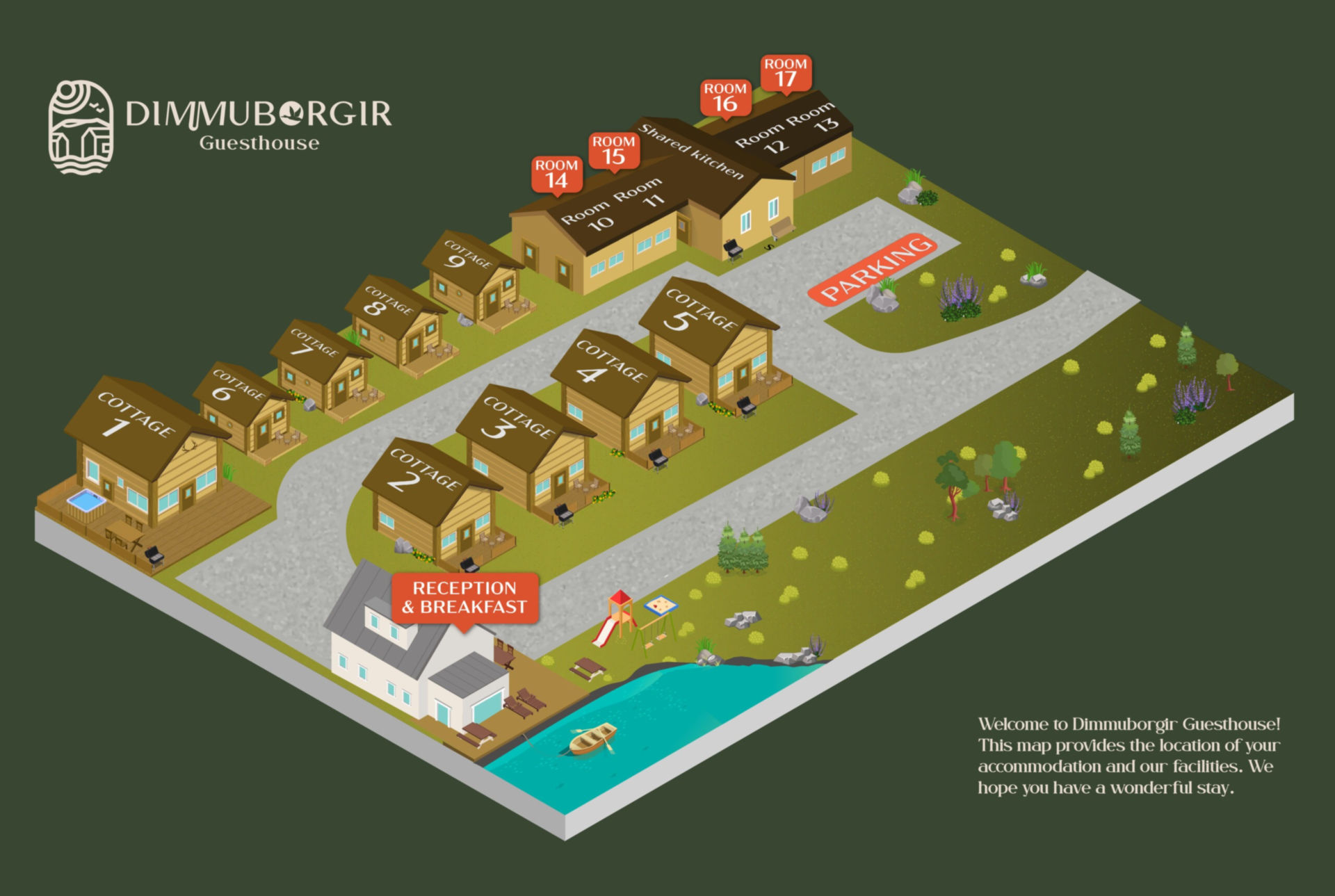 Dimmuborgir Guesthouse es un eco-resort ubicado a orillas del lago Mývatn en el norte de Islandia, donde la sobrecogedora naturaleza islandesa te envuelve para ofrecerte una experiencia única. Rodeado de volcanes y una rica variedad de flora y fauna única, este es un lugar donde la naturaleza y la tranquilidad se fusionan.