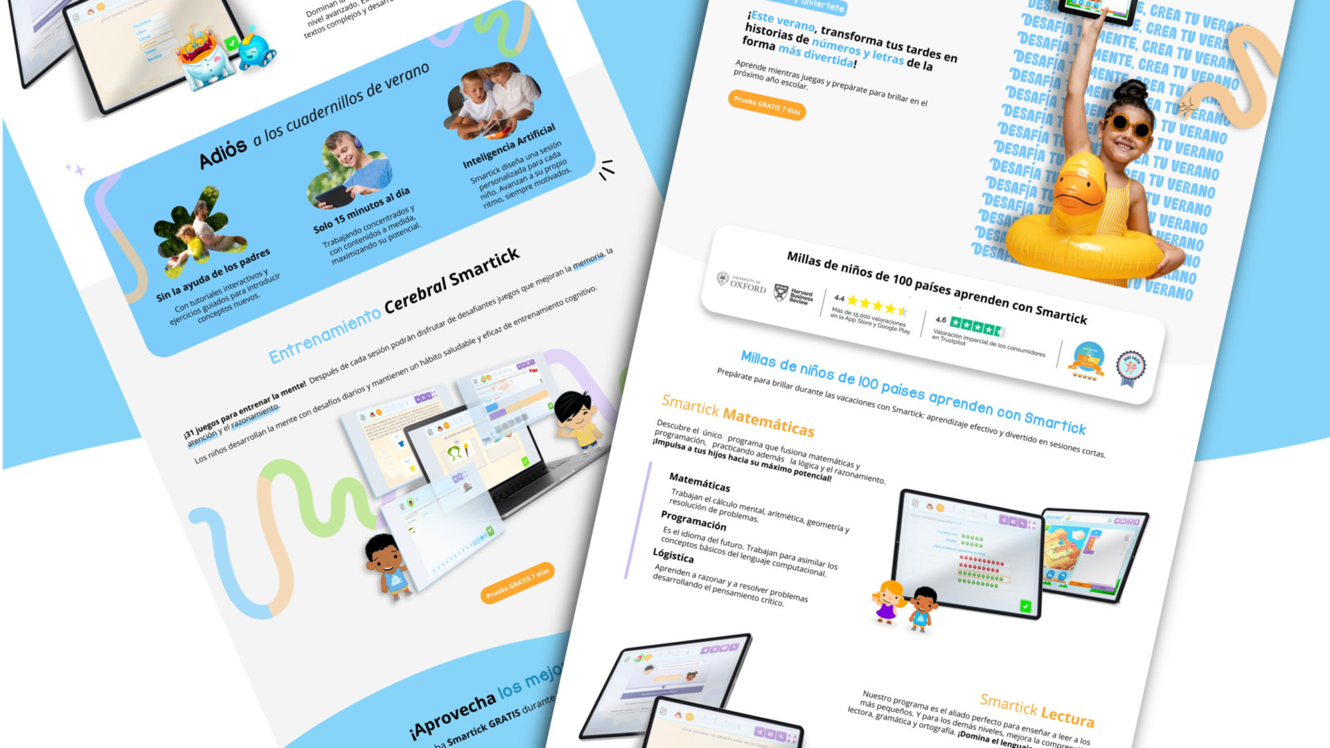 Para su campaña de verano, tuve el privilegio de diseñar una landing page especial que encapsula el compromiso de la plataforma con la educación personalizada, y el verano. El diseño se centra en la temática veraniega y una navegación intuitiva, transmitiendo sin esfuerzo los valores educativos de Smartick e invitando a los visitantes a explorar sus soluciones de aprendizaje personalizadas.